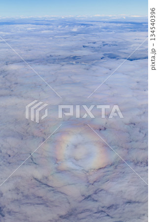 雲海に浮かぶ機影とブロッケン現象の虹の輪