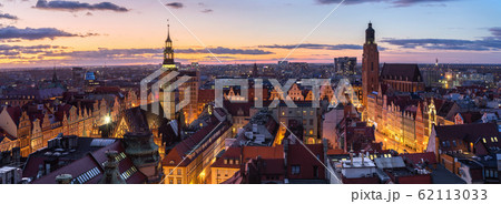 Wroclaw, Poland. Panoramic aerial cityscape on sunset