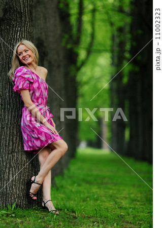 Woman on a shady park alley