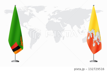 Zambia and Bhutan flags for official meeting