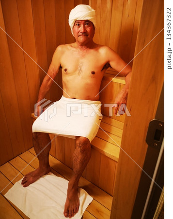 サウナでくつろぐ男性
