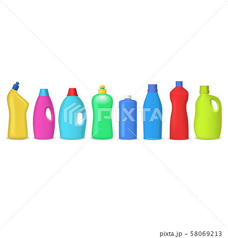 Realistic Detailed 3d Blank Detergent Bottles Template Mockup Set in a Row. Vector