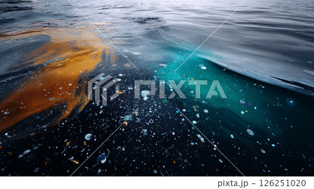 Plastic trash in the ocean. Environmental pollution. sea is covered in plastic and dead sea creatures. global problem, threat ocean wildlife and calling for urgent action to protect the environment.