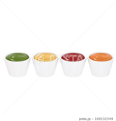 fast food menu 3d clipart, Set of sauces tomato , mustard , dip cheese and green sauce