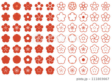 シンプルな梅の花のベクターイラストセット