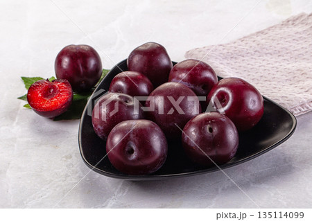 Raw ripe purple plum heap