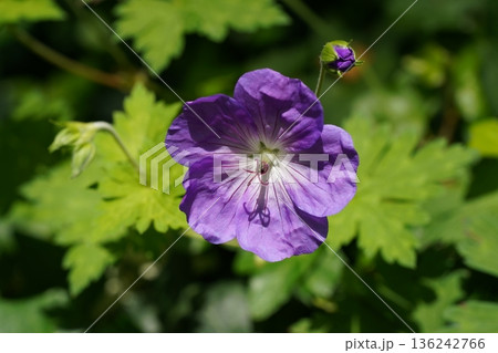 Beautiful Purple Geranium Flower in Natural Sunlight