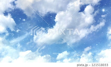 コットンキャンディ 空 キラキラ輝く メルヘンな手描き背景素材