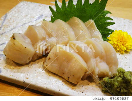 タイラギの貝柱をさっと炙ってお刺身で