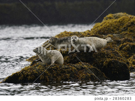 アラスカ、プリンスウィリアム湾 氷河の氷の上のゼニガタアザラシ