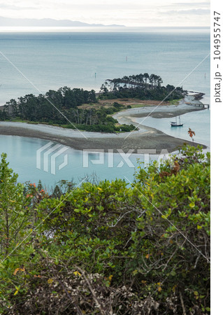 ニュージーランド ネルソンのプリンセス・ドライブ・ルックアウトから見えるタスマン湾とボルダー・バンク