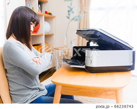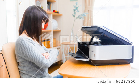 プリンターを開ける女性 不具合 トラブル インク交換 コピースペース 4:3