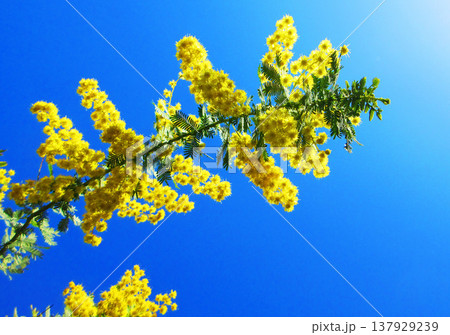 ミモザ(ギンヨウアカシア・プルプレア)の緑の葉の風景