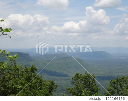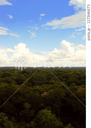 【カンボジア】青空と白い雲と木のある景色(プレアヴィヒア寺院)