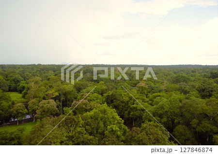 【カンボジア】青空と白い雲と木のある景色(プレアヴィヒア寺院)