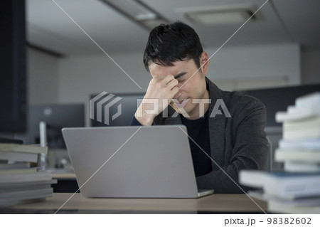 考え込む30代のビジネスマン 悩む・疑問・トラブル イメージ