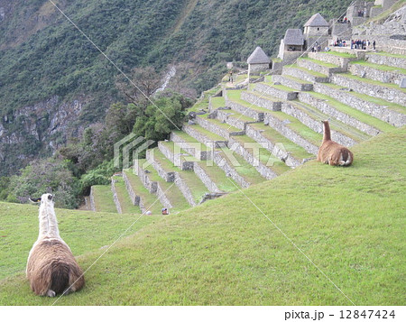 早朝のマチュピチュとリャマ