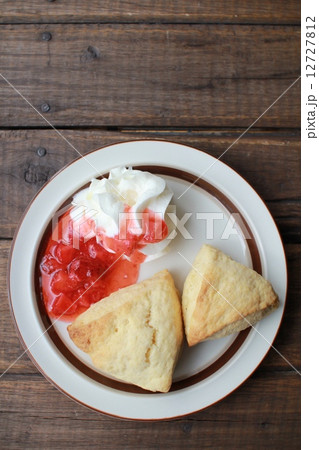 生クリームと自家製イチゴソースを添えた手作りのスコーン