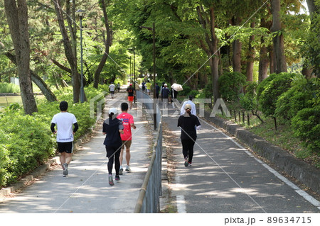 公園をランニングする市民ランナー