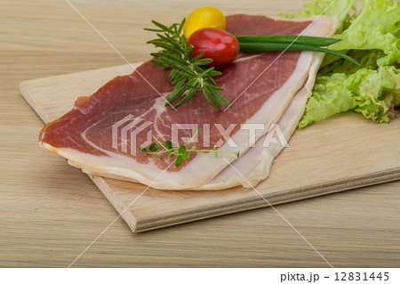Italian prosciutto crudo or spanish jamon. Jerked meat serrano ham tasty
