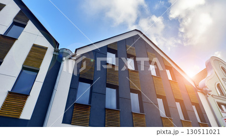 Architecture and real estate, modern residential apartment building with large panoramic windows