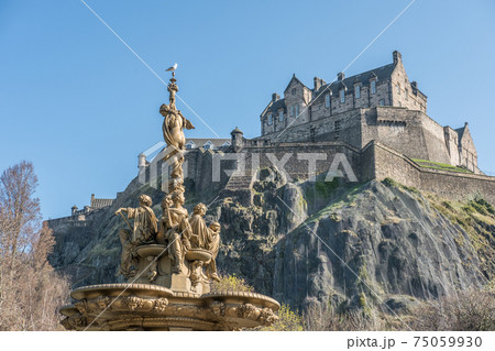 The Ross Fountain and Edinburgh Castle in Edinburgh, Scotland