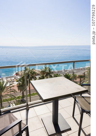 フランス、ニースのリゾートホテルの渚のバルコニー