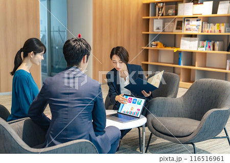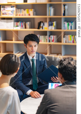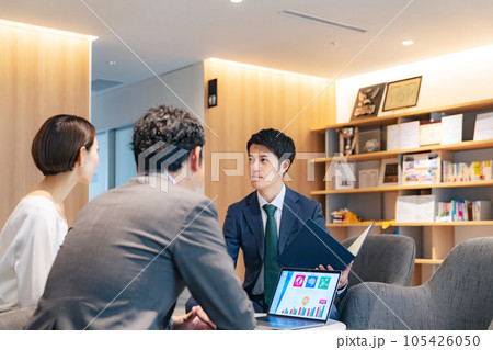 ロビーで商談するビジネスマン