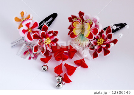 白背景に赤い椿の髪飾りの簪 かわいい 和服 成人式 袴
