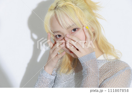 黒いジャケットを着た若いハイトーンの女性のクールなポートレート