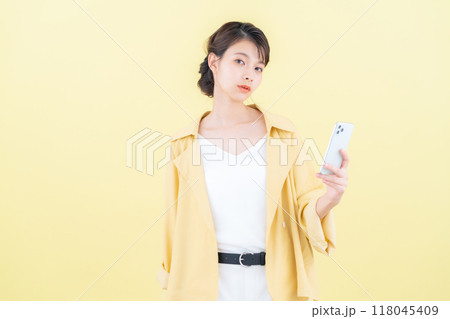 笑顔がかわいいショートカットのおしゃれな女性の白バッグポートレート