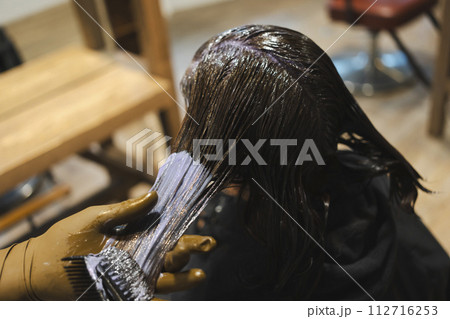 美容室・美容院・ヘアサロンで施術を受ける女性と美容師