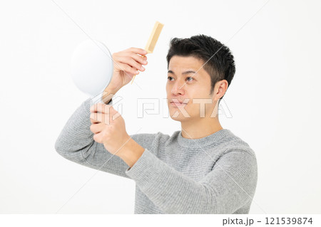 ヘアアイロンで髪の毛をセットしている女性の後ろ姿