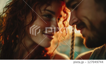 Romantic Couple Close-Up Portrait Golden Hour Lighting