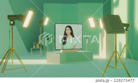 プロのビューティー撮影現場 – モニターに映る女性モデルのポートレート
