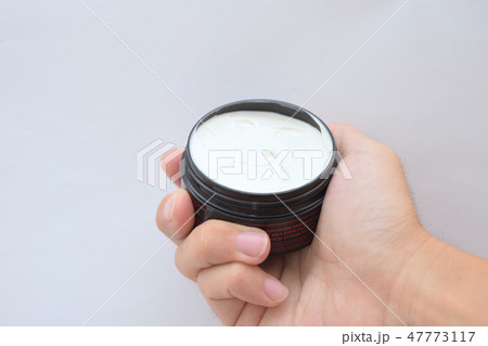 ヘアワックスを持つ男性
