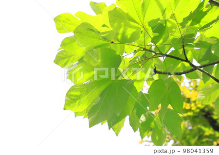 大きな葉とアオギリの緑色の実
