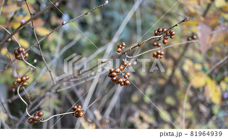 ぼかした秋の林にヘクソカズラの実/11月日本