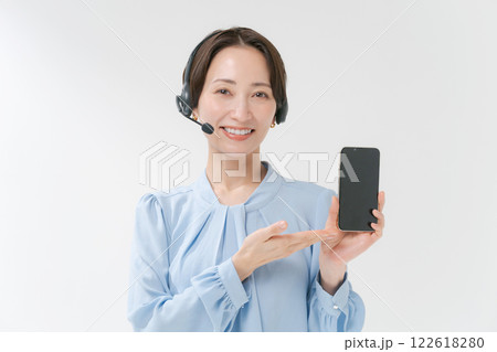 ヘッドセットをつけた女性の写真