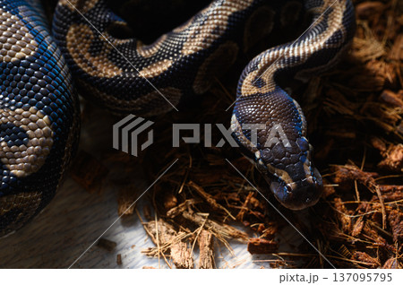 Coiled Snake with Intricate Scales: Wildlife and Venomous Reptile Pattern in Nature