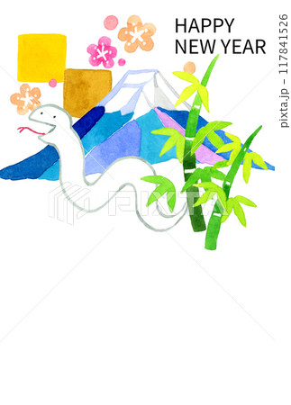 水彩風の巳年の年賀状テンプレート(文字なし)