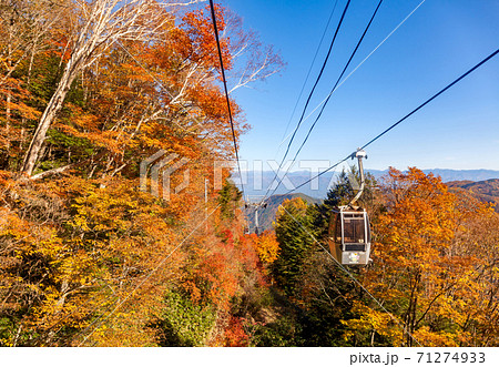 秋の紅葉シーズンの富士見台高原ロープウェイ