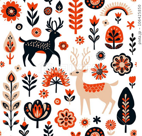 Seamless vector pattern with cute hand-drawn in a folk art style.