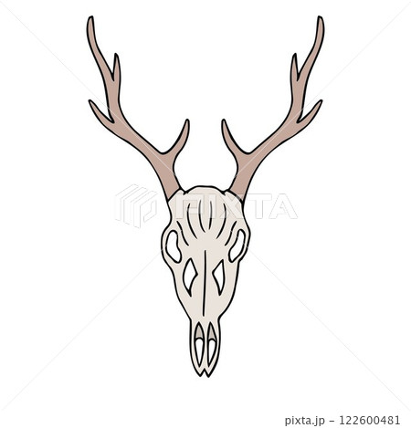 Vector hand drawn sketch doodle colored deer skull
