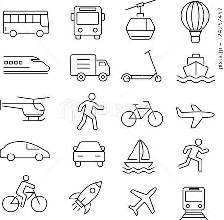 シンプルでかわいい乗り物に関するアイコンのベクターイラスト素材/交通/観光