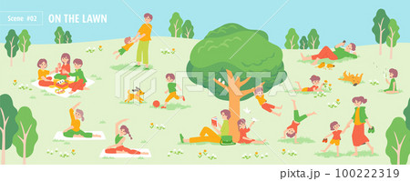 芝生広場で過ごす人々