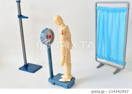 体重測定をする笑顔の男の子