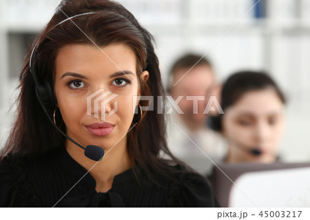 Beautiful brunette smiling businesswoman hold in arm cellphone