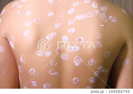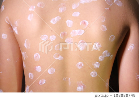 水痘(水疱瘡で発疹の出た子供の背中)
