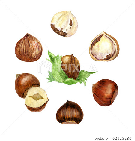 Watercolor hazelnuts collection